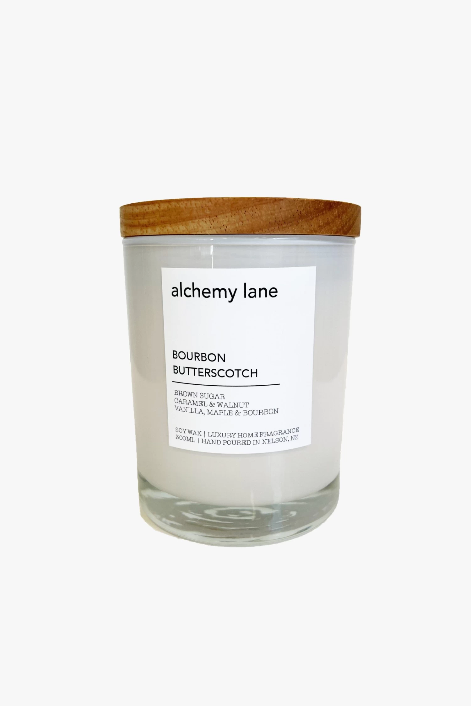 300ml natural soy wax candle. 70 hours burn time. Bourbon Butterscotch A sweet and intoxicating cocktail or warm butterscotch with an underlaying base of Bourbon. This is a complex and layered scent with distinctive brown sugar and maple tones. Simply delicious! Top Notes: Brown Sugar Middle Notes: Caramel & Walnut Base Notes: Vanilla, Maple & Bourbon