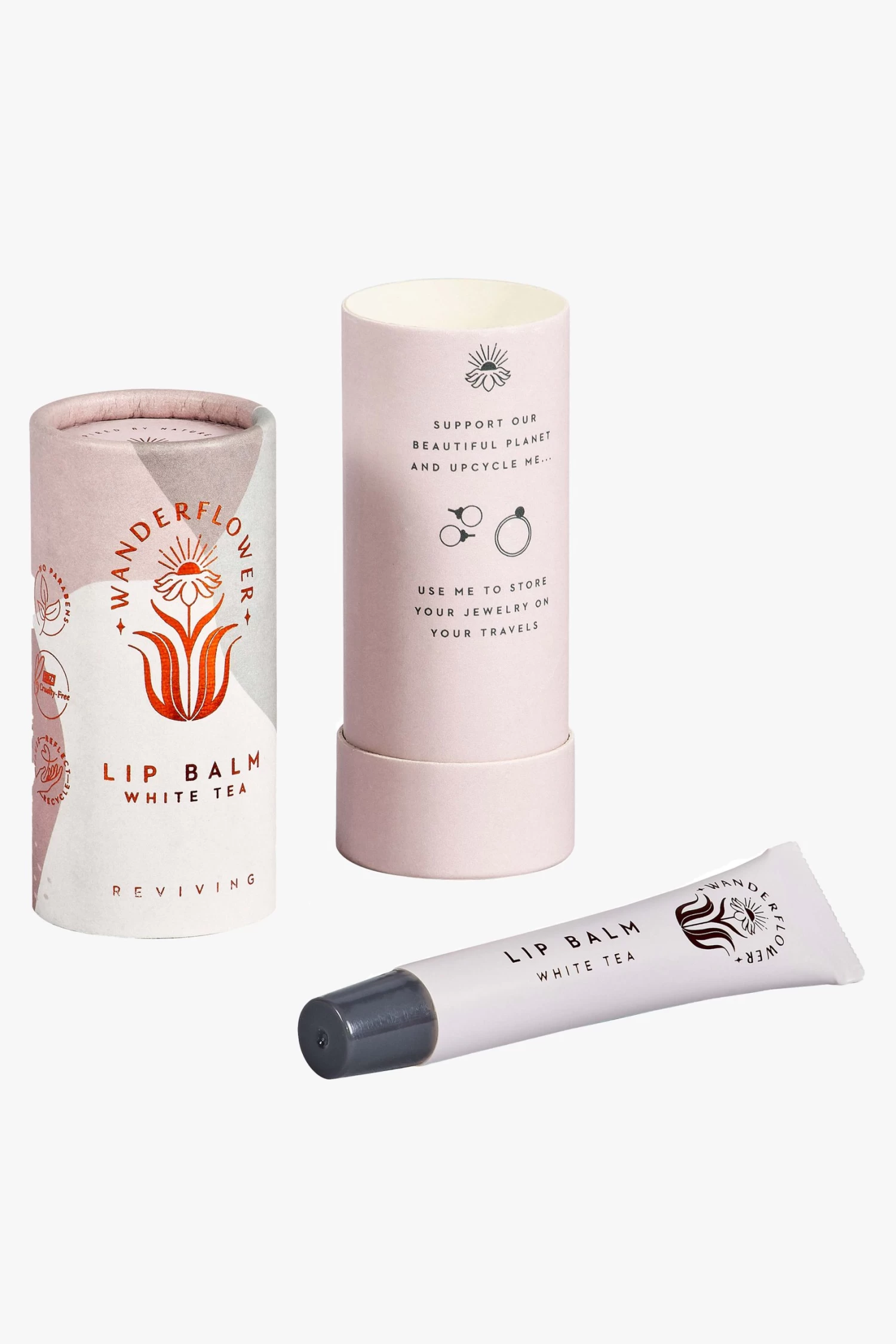 Whether it’s cold, dry weather, or traveling abroad that takes its toll on your lips, seek nature’s solution with Wanderflower. The sweet and delicate white tea fragrance, with its reviving qualities, refreshes the senses. Enriched with shea butter and sweet almond oil