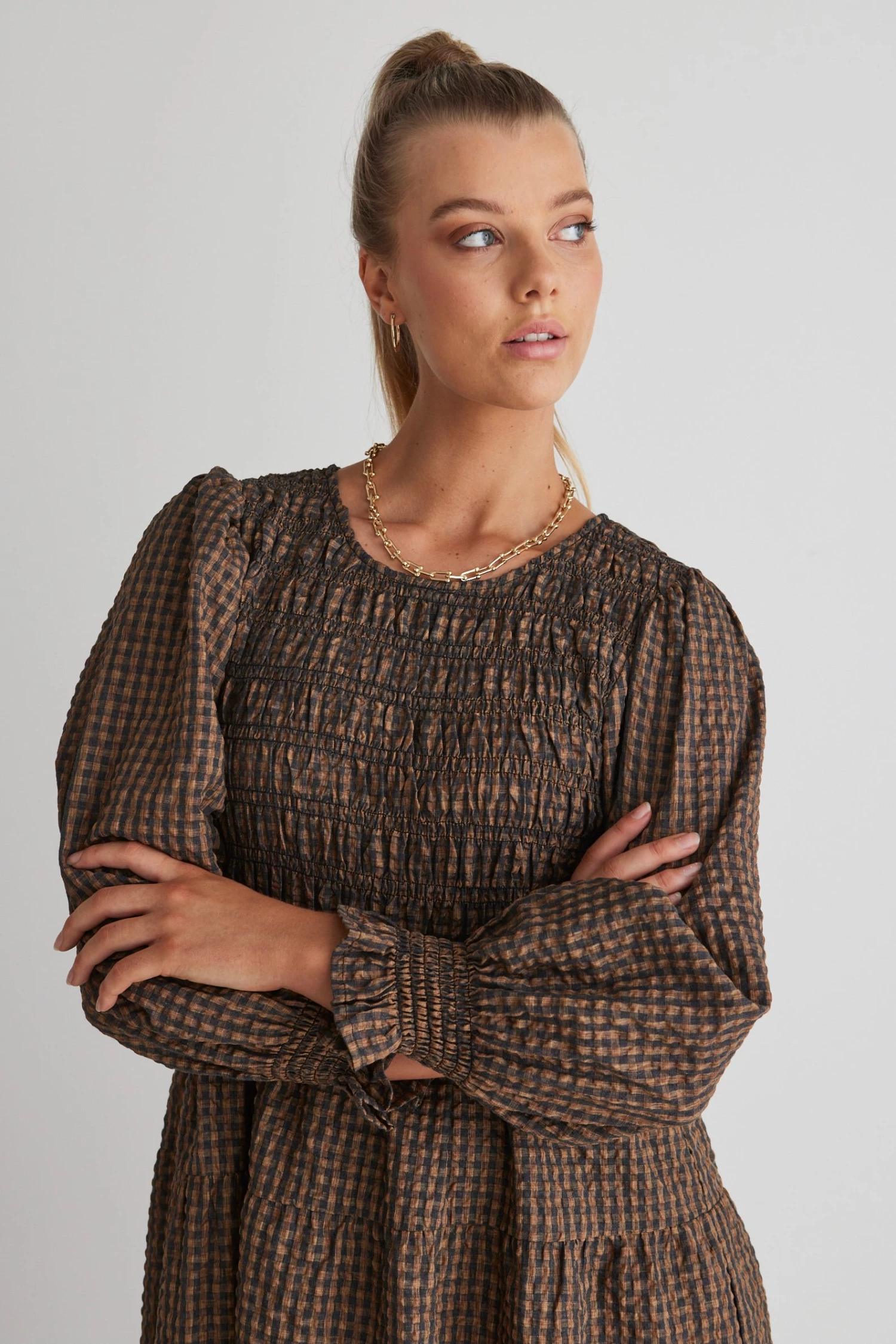 Be the first to review “Piper Toffee Gingham Shirred Bodice Tiered Maxi Dress” Cancel reply