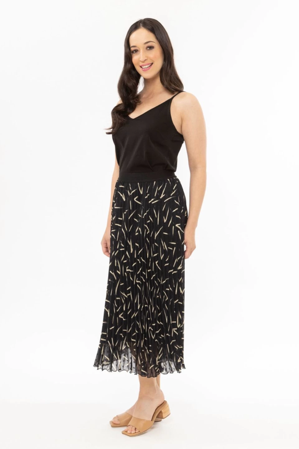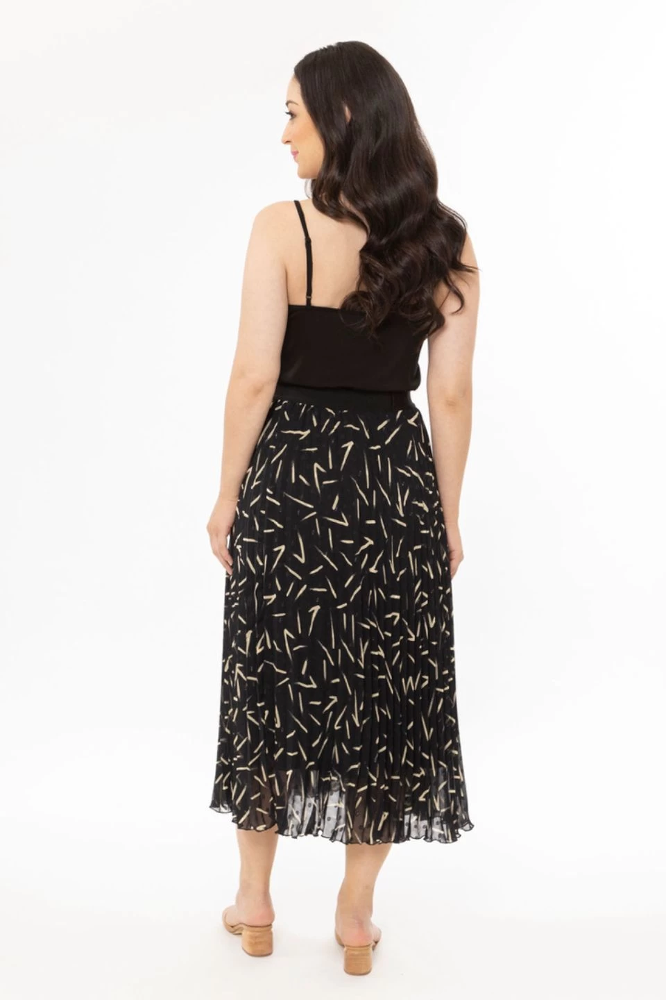 The perfect print skirt has landed. This pleasted midi skirt comes in a gorgeous black spot pattern, we love this skirt paired with a cosy knit and sneakers or boots and a blazer for a more elevated look.
