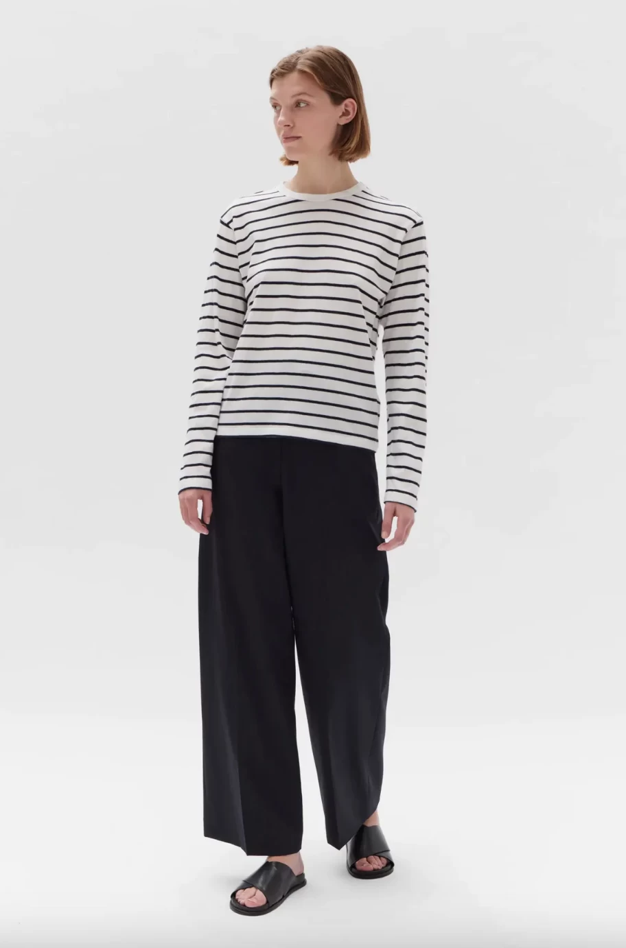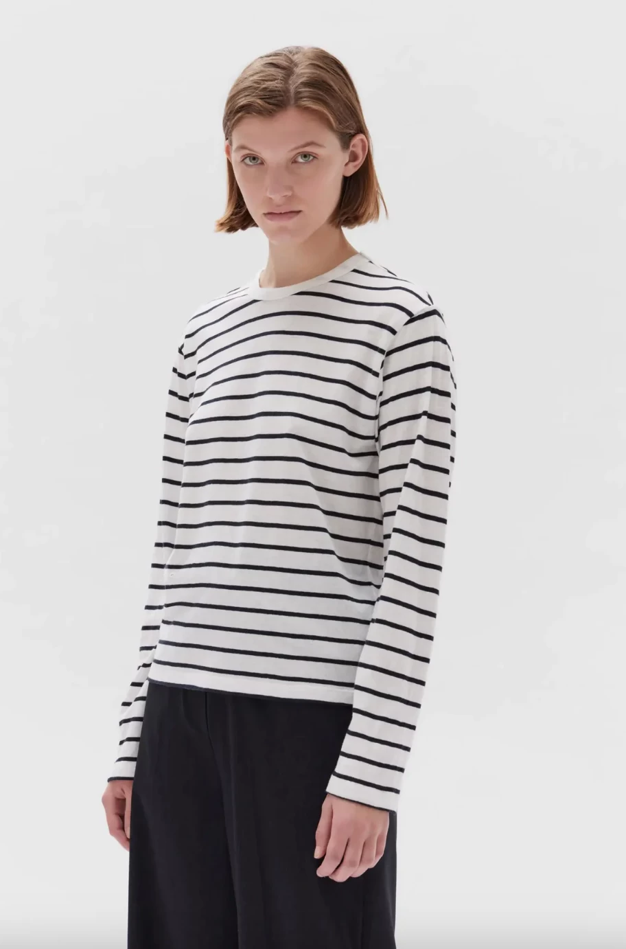 Introducing the Rhode Navy Stripe Long Sleeve by Assembly Label. Beautiful by itself or used as a layer, this versatile top has got you covered for the day.