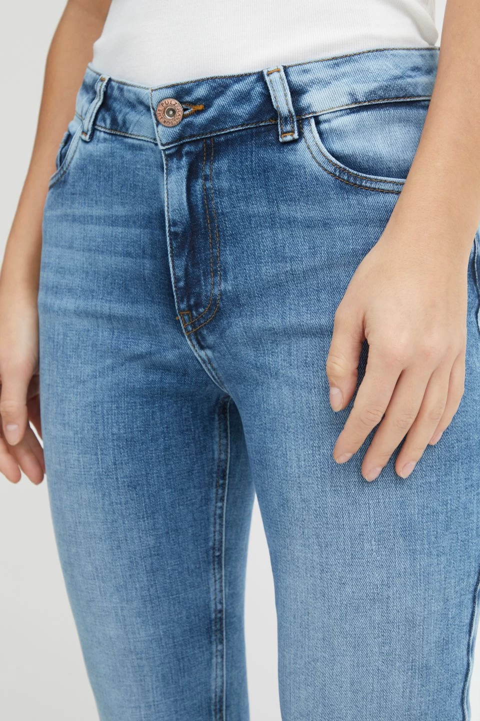The Ria highwaist kick flare jeans from Pulz are the most comfortable jeans you will ever own! We love the blue denim wash paired with a basic tee and white sneakers. Â