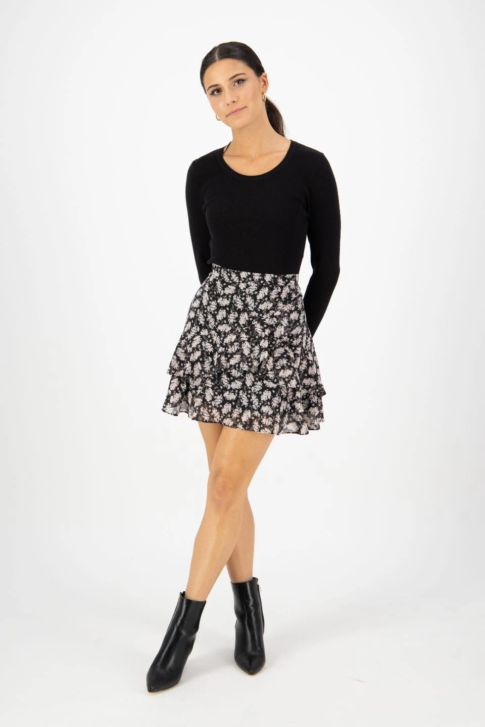 Feel flirty in the stunning new mini skirt from Among the Brave. Featuring an asymmetrical ruffle detailing this skirt will dress up any outfit. Perfect for cocktails on the weekend!Â