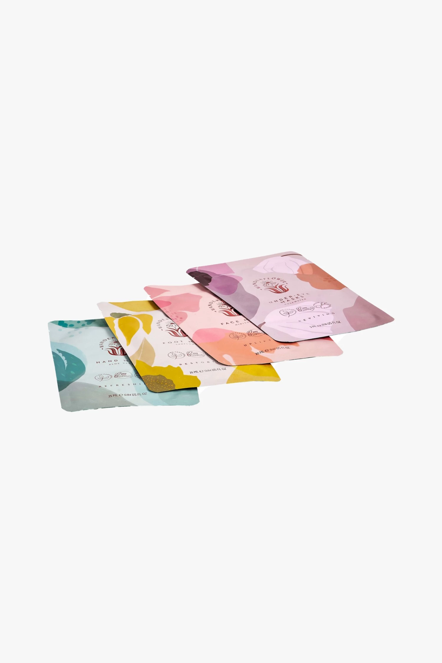 Treat yourself to the most natural of relaxation sessions with this Sheet Mask Set from Wanderflower. The set contains four Sheet Masks for the face (Hibiscus), the eyes (Rosewater), the hands (Aloe Vera), and the feet (Sunflower); all carefully crafted from woven bamboo fibre. – This set is packaged in a giftable Wanderflower card envelope, making it a perfect gift for your loved one!
