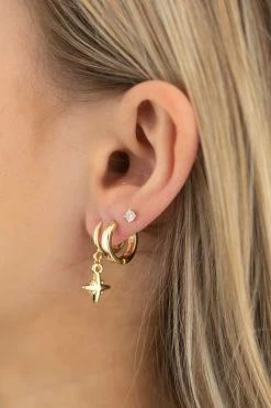 With a simple yet stunning design, our elegant star + moon gold earrings are the perfect piece to elevate a casual look and can be easily paired with other jewellery.