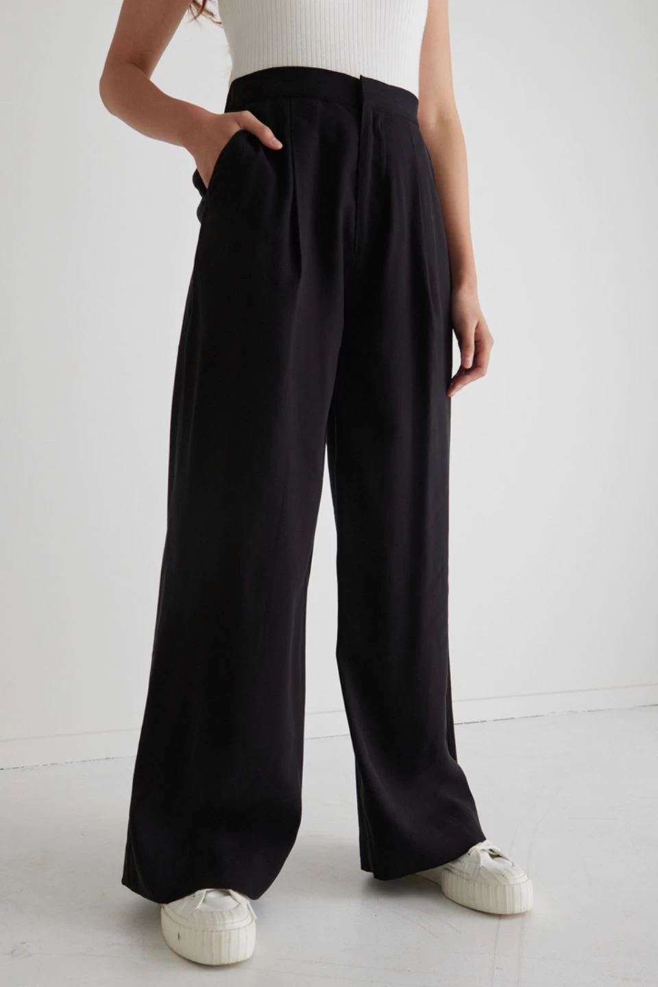 The Tailor High waisted pleated pants are a stylish and comfortable addition to any wardrobe. Featuring a high-rise waist that sits comfortably at the natural waistline, these pants provide a flattering silhouette. The pleats add a touch of elegance, Ideal for both casual and formal occasions. These pants can be paired with a variety of tops and shoes for a versatile and chic look.