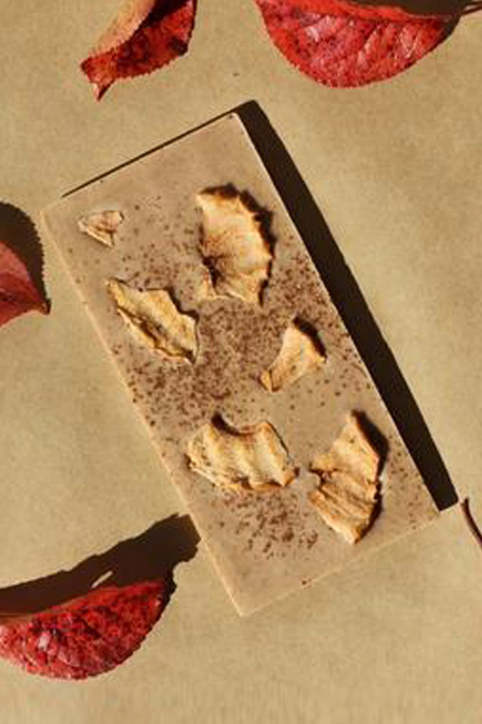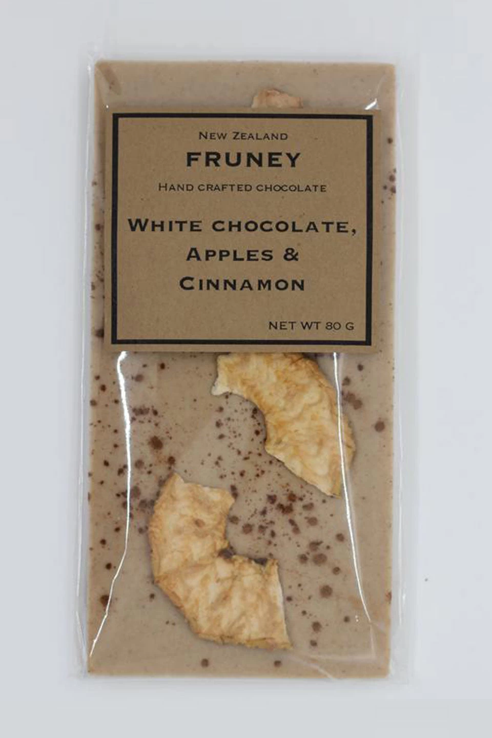 Delicious combination of Belgium white chocolate, cinnamon, and New Zealand freeze-dried apples.